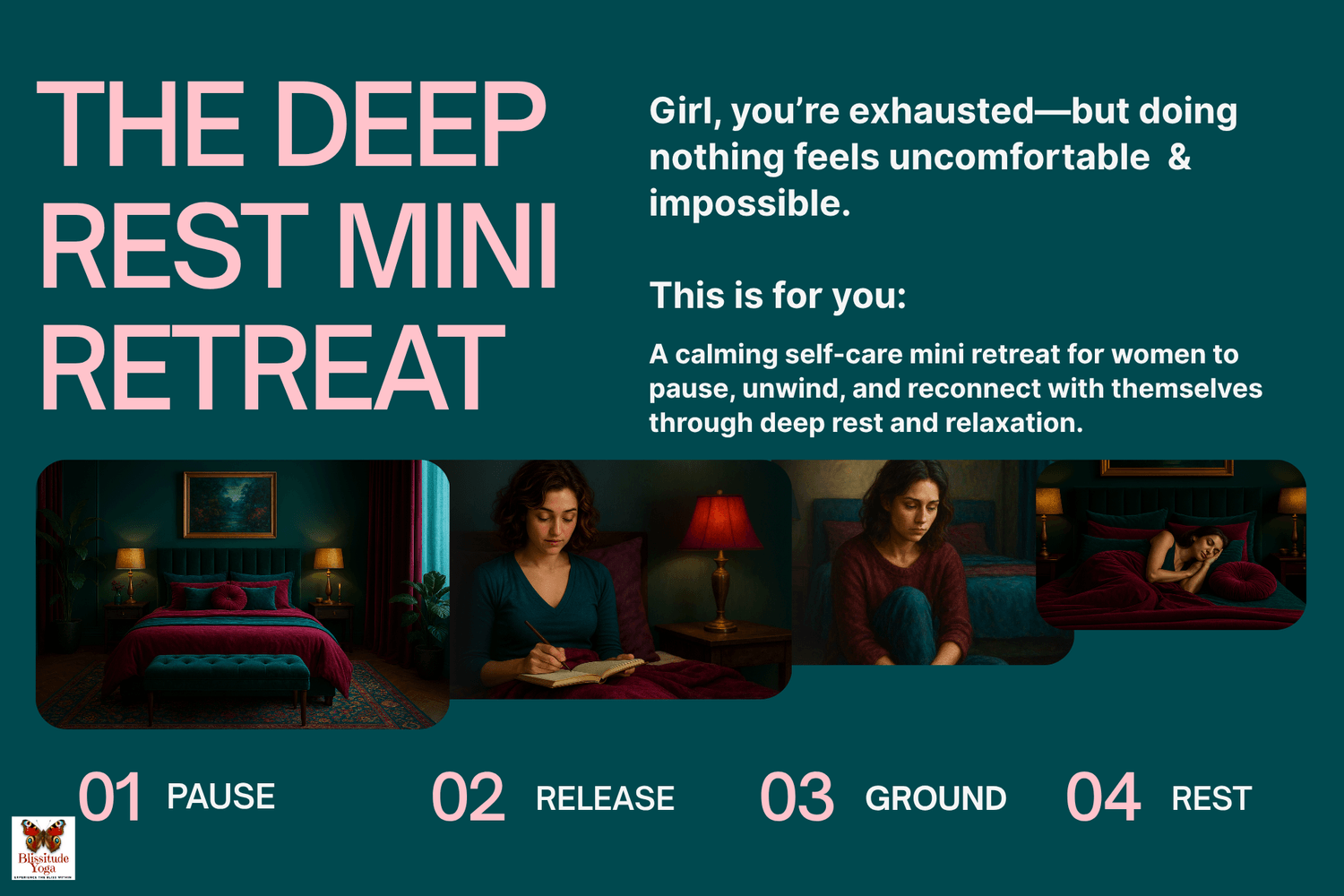 The Deep Rest Mini Retreat invites you to slow down, release tension, and reconnect with your inner calm. Through consistent practice, you’ll begin to notice subtle yet powerful shifts — deeper rest, quieter thoughts, softer shoulders, and a calmer heart. Over time, this simple practice becomes a refuge — a way to reset your energy, nurture your body, and feel grounded even when life feels full.